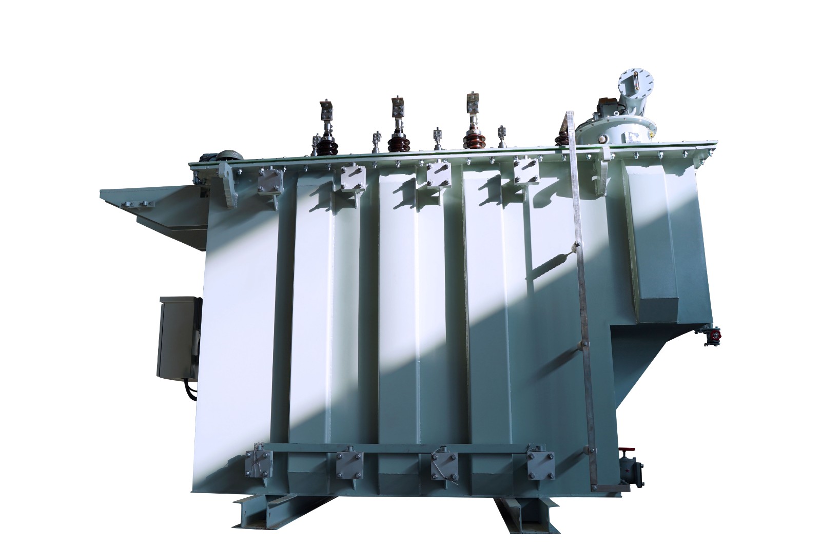 可在一次側(cè)借助于有載調(diào)壓開關(guān)在調(diào)壓范圍內(nèi)調(diào)整電壓,以保證輸出電壓的穩(wěn)定性,35KV級6300kVA以上變壓器采用折板油箱,大大加強了油箱機械強度,減少焊縫,提高了外觀質(zhì)量。